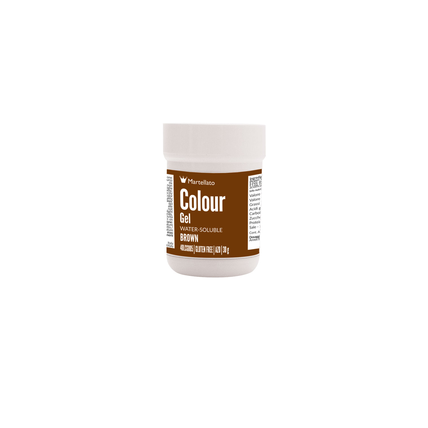 Konzentrierter wasserlöslicher Gelfarbstoff in brauner Farbe. Ideal für die Massendekoration aller Produkte auf Wasserbasis oder Emulsionen wie Zuckerpaste, Sahne, Buttercreme, Zuckerguss und verschiedene Teige wie Kekse und Meringues.