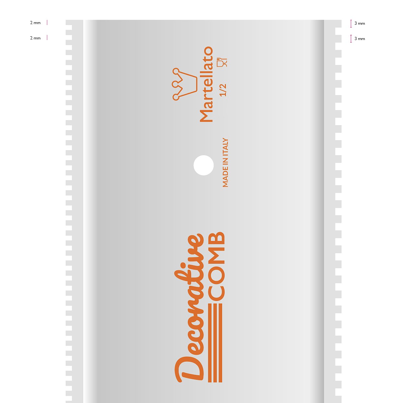 Kamm aus Kunststoff und Gummi, zur Herstellung von Schokoladen- oder Keksdekorationen. Jeder Kamm ist mit einem doppelten Muster zur Verzierung versehen.