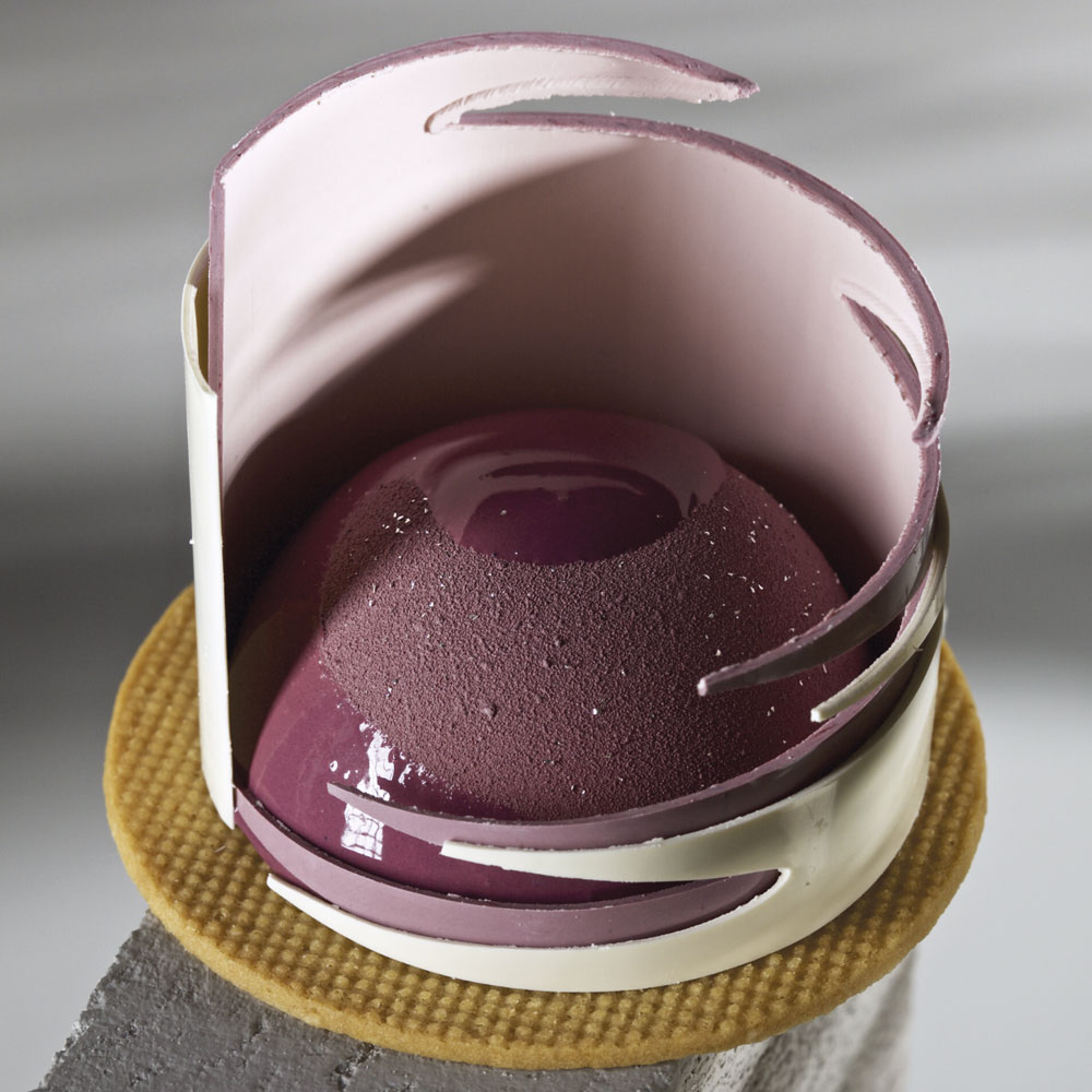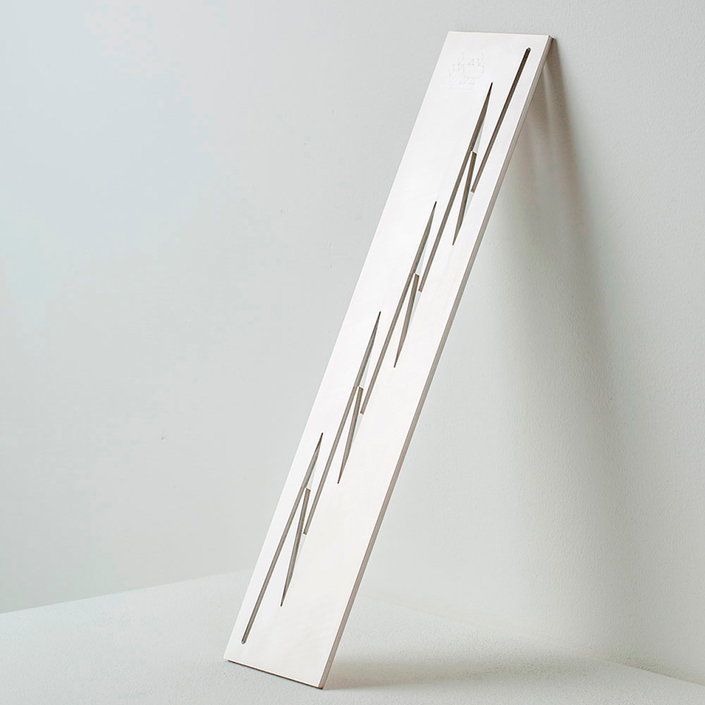 Edelstahlschablone zur Herstellung eleganter Schokoladendekorationen in Form eines Kardiogramms. Mit dieser Dekorierschablone aus Edelstahl, die vom international renommierten Konditor Frank Haasnoot entworfen wurde, können Sie aufwendige Dekorationen zur Veredelung von Portionsgerichten und Torten herstellen.